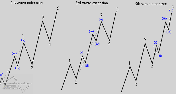 Most impulses contain what Elliott called an extension. An extension is an elongated impulse with exaggerated subdivisions. The vast majority of impulses contain an extension in one and only one of their three actionary subwaves.