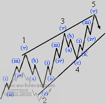 • a wedge shape within two converging lines • wave 4 must trade into a territory of a wave 1 • appears primarily in the fifth wave position, in the C wave position of A-B- C and in double or triple threes as the final "C" wave |
