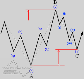 • wave B terminates about at the level of the beginning of wave A • wave C terminates a slight bit past the end of wave A • appears in wave two or four in an impulse, wave B in an A-B-C, wave X in a double or triple zig-zag, or wave Y in a triple threes |